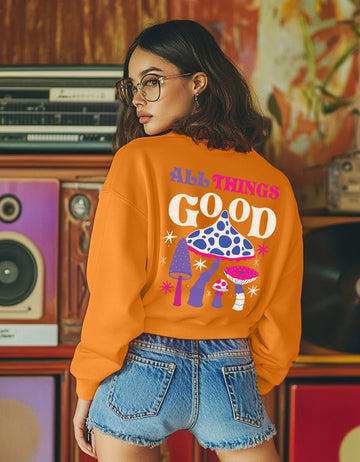All Things Good Graphic Printed Oversized Orange Sweatshirt