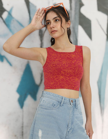 Viva Magenta Printed Square Neck Cropped Tank Top