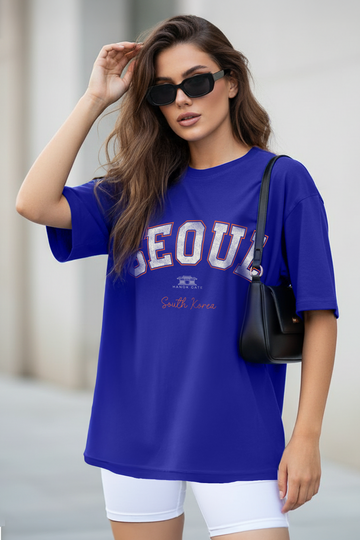 Seoul Royal Blue Oversized Fit Graphic T-Shirt