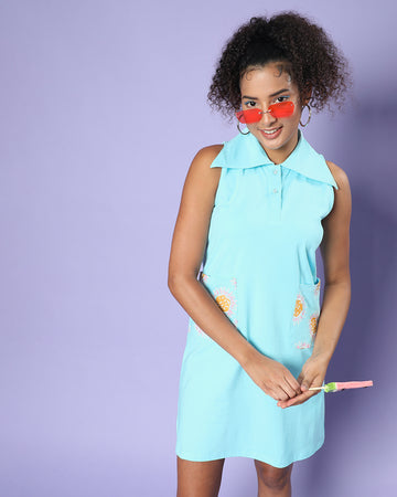 Casual Printed Sleeveless Blue Above Knee Length T-shirt Dress
