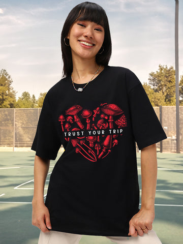 Trust Your Trip Black Oversized Graphic T-Shirt
