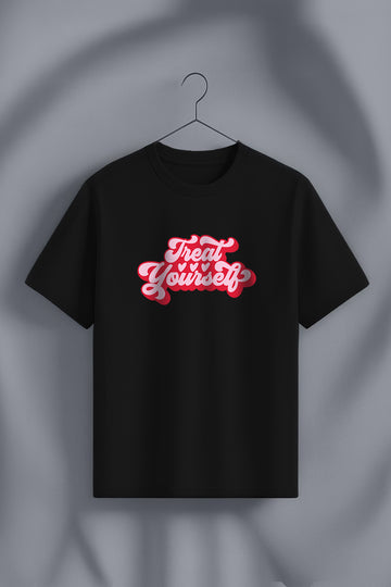 Treat Yourself Black Printed Regular Fit T-Shirt